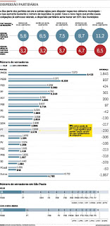 As coligações favorecem a pulverização porque partidos pequenos, que isoladamente não alcançariam o piso mínimo de votos para eleger um vereador, acabam pegando “carona” ao fazer alianças com legendas maiores. Nas eleições deste ano, os maiores fornecedores dessa carona foram o PMDB e o PSDB, que, com seus votos, garantiram a eleição de 2.782 vereadores de outros partidos. Na prática, as duas legendas poderiam ter obtido, respectivamente, 24% e 17% a mais de cadeiras se não tivessem feito alianças.
